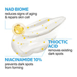 𝗡𝗔𝗗 + : NAD+ Biome (Nicotinamide Adenine Dinucleotide) is an alternative to NMN, offering another way to support healthy NAD+ levels. NAD+ helps boost cellular energy, supports skin repair, and may restore radiant, youthful skin.