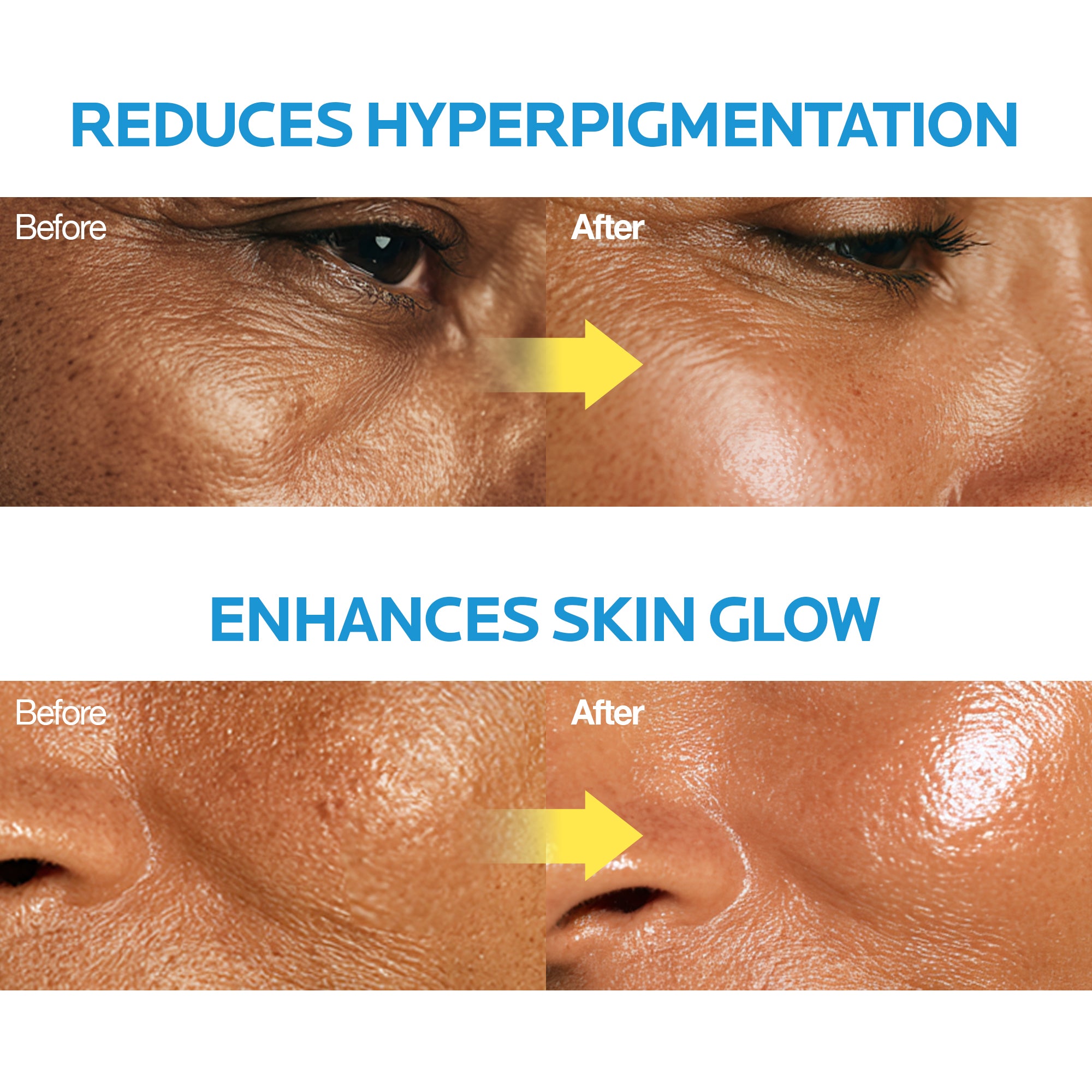 𝗩𝗜𝗦𝗜𝗕𝗟𝗘 𝗥𝗘𝗦𝗨𝗟𝗧𝗦 𝗜𝗡 𝟭𝟰 𝗗𝗔𝗬𝗦: In just 2 weeks, skin looks more radiant and feels firmer. Dark spots start to fade, texture feels smoother, and your face looks brighter and healthier with daily use