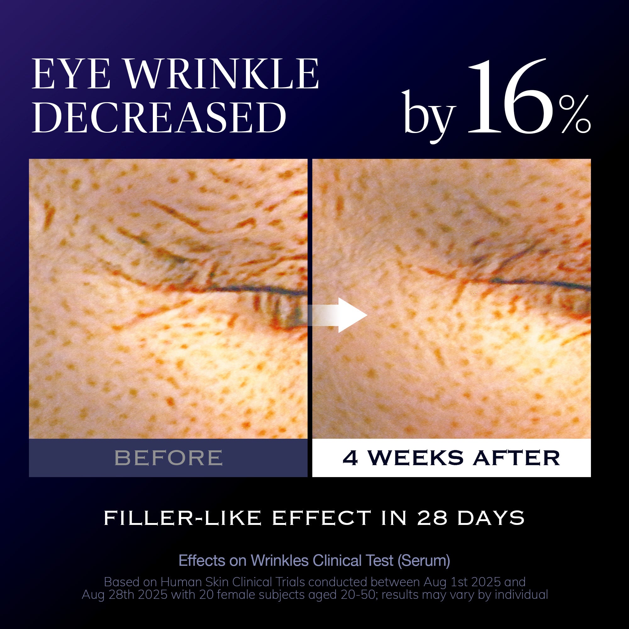𝗩𝗜𝗦𝗜𝗕𝗟𝗘 𝗥𝗘𝗦𝗨𝗟𝗧𝗦 𝗜𝗡 𝟮𝟴 𝗗𝗔𝗬𝗦: Clinical testing showed eye wrinkles reduced by 16% after 4 weeks. See visible improvement in firmness, elasticity, and skin texture with consistent use.